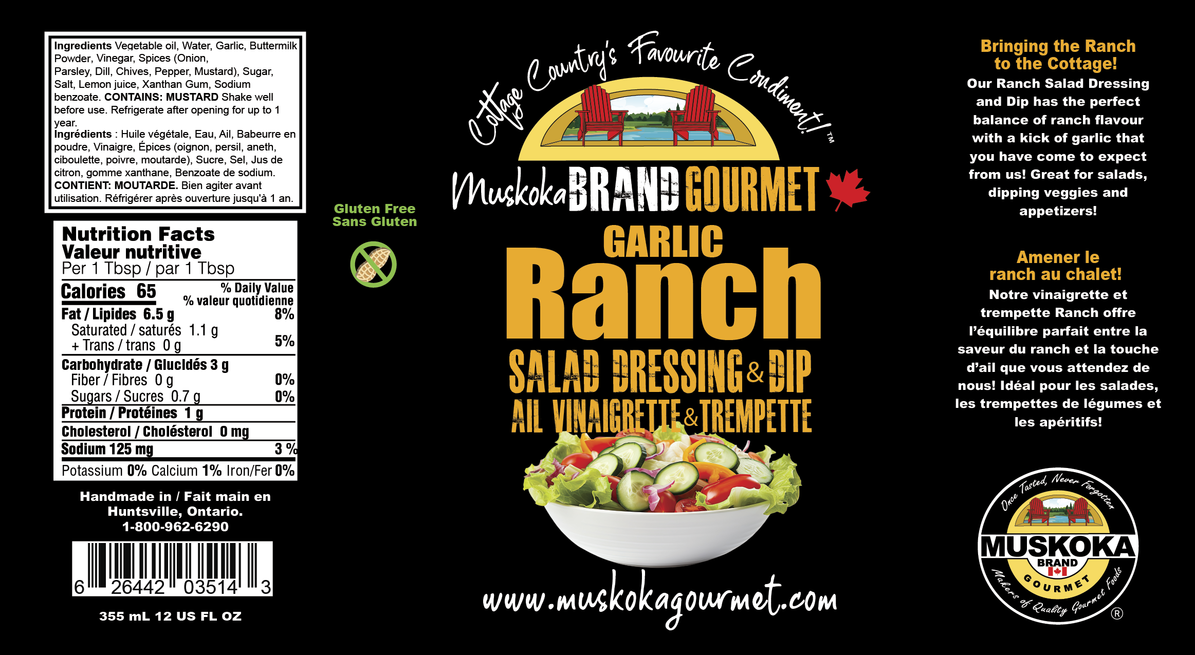 Our Ranch Salad Dressing and Dip has the perfect balance of ranch flavour with a kick of garlic that you have come to expect from us! Great for salads, dipping veggies and appetizers!
